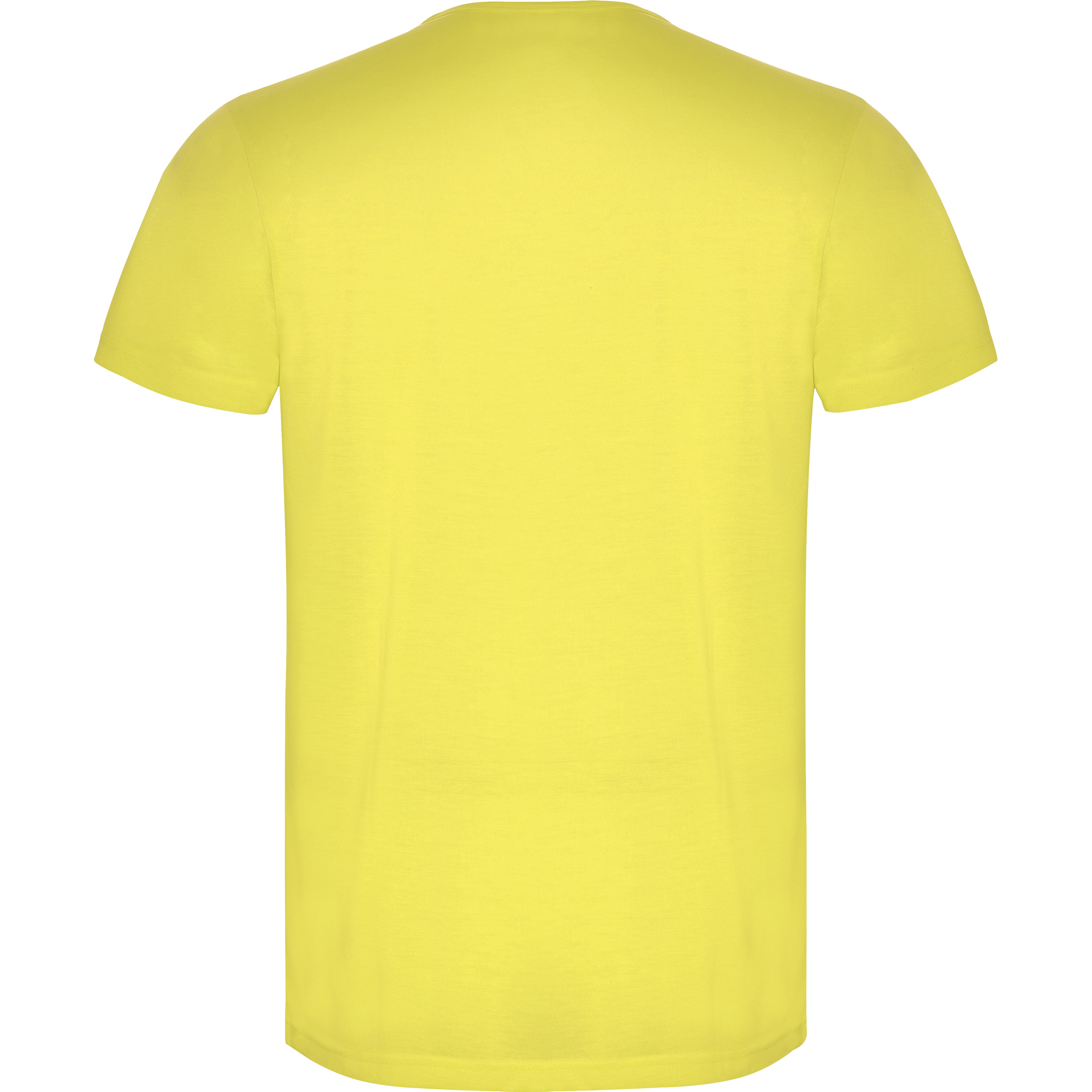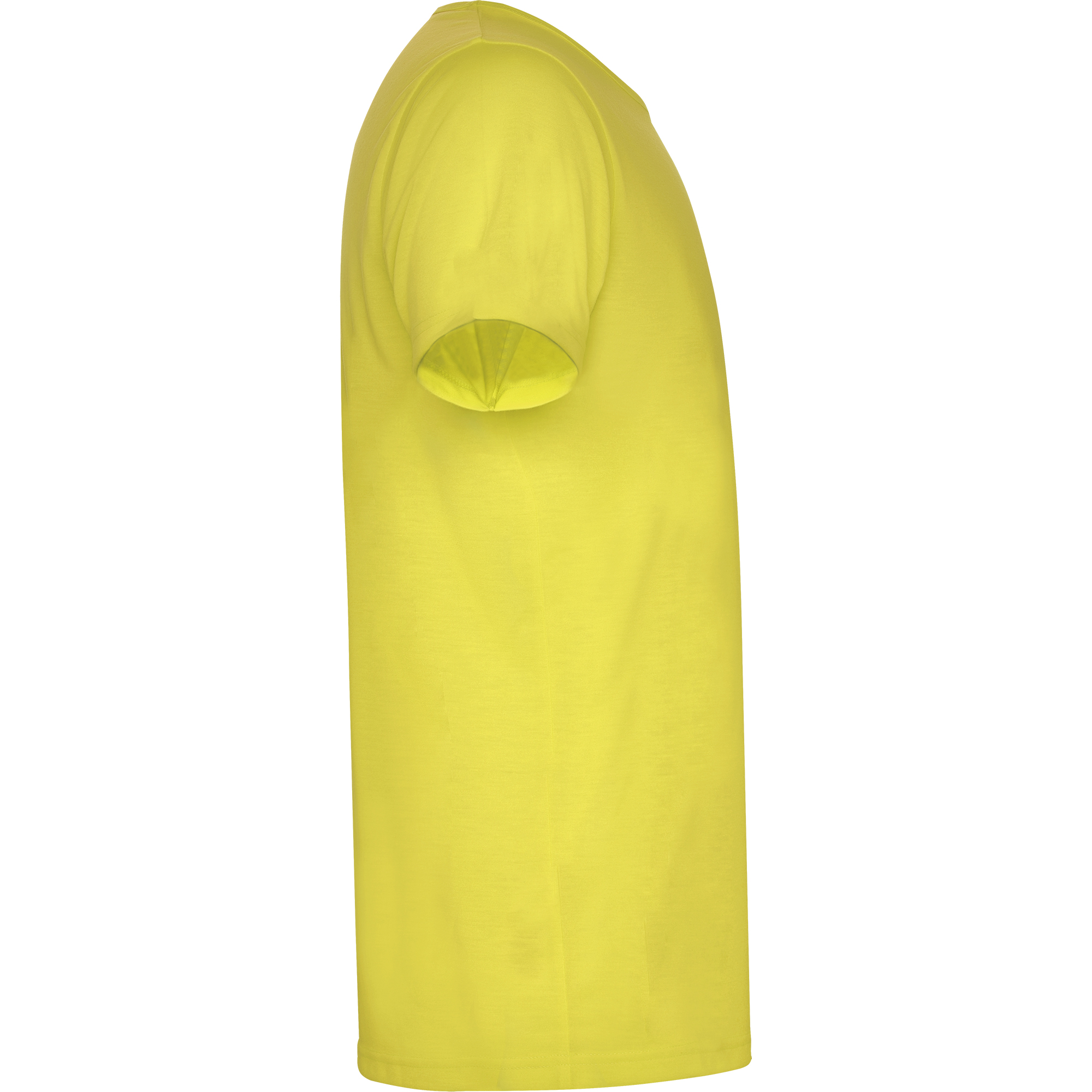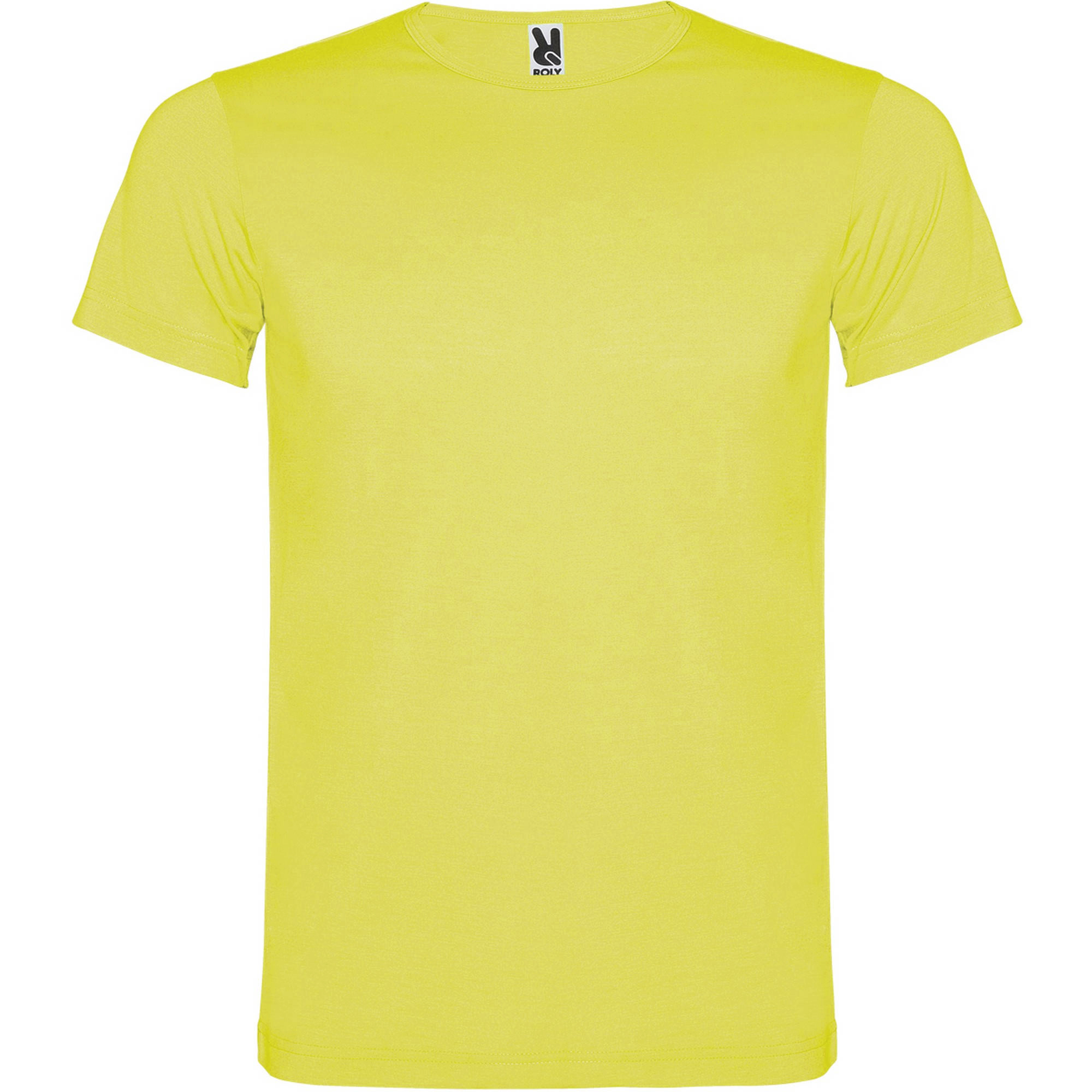 Camiseta de manga corta de poliéster tacto algodón con costuras laterales. Cuello redondo con ribete del mismo tejido.