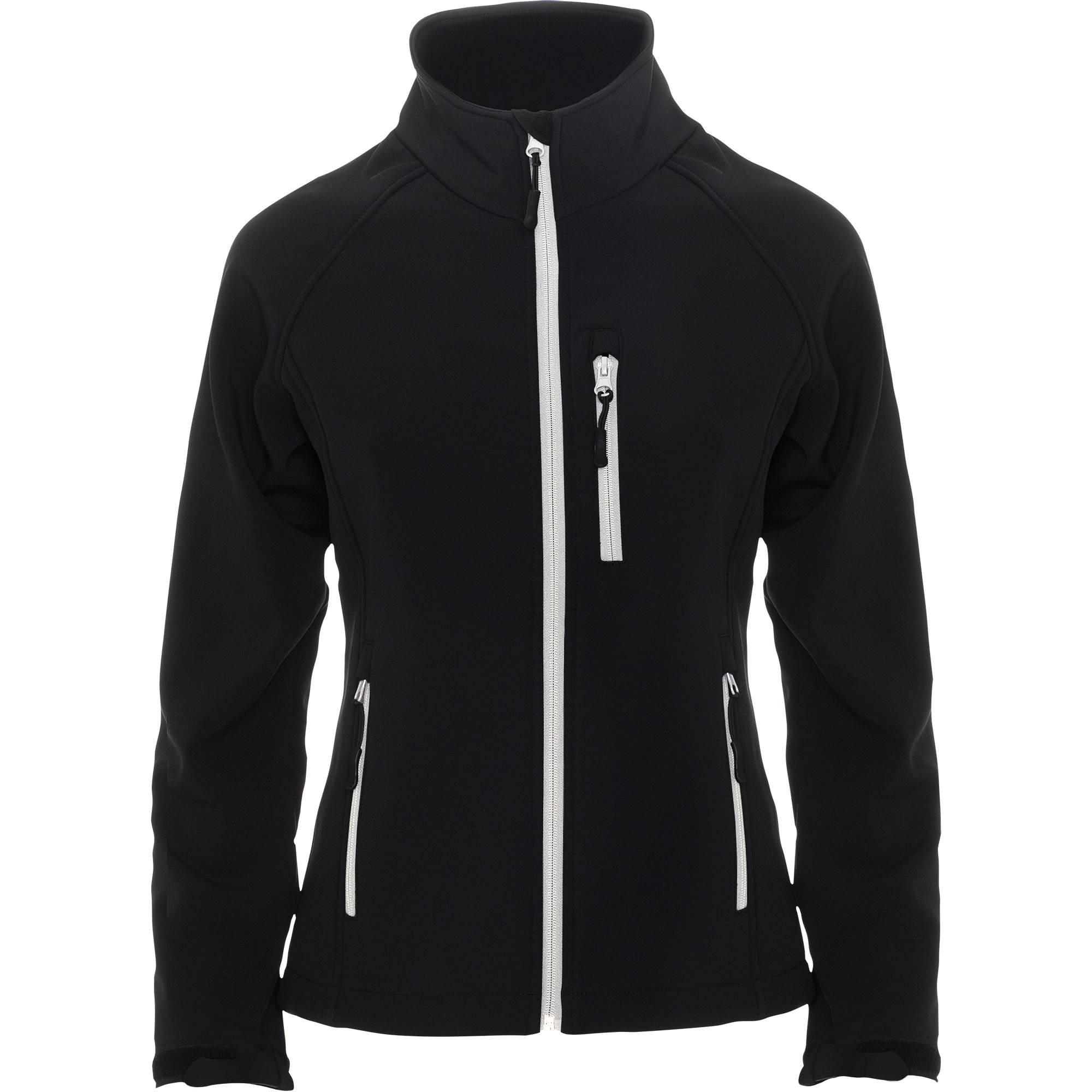 Chaqueta softshell de 2 capas con cremallera frontal invertida a contraste. Repelente al agua y resistente al viento. Entallada en cintura. Interior en tejido micropolar. Dos bolsillos laterales y uno en pecho izquierdo con cremalleras invertidas a contraste. Protector de barbilla del mismo tejido invertido. Ajustadores laterales en el interior.