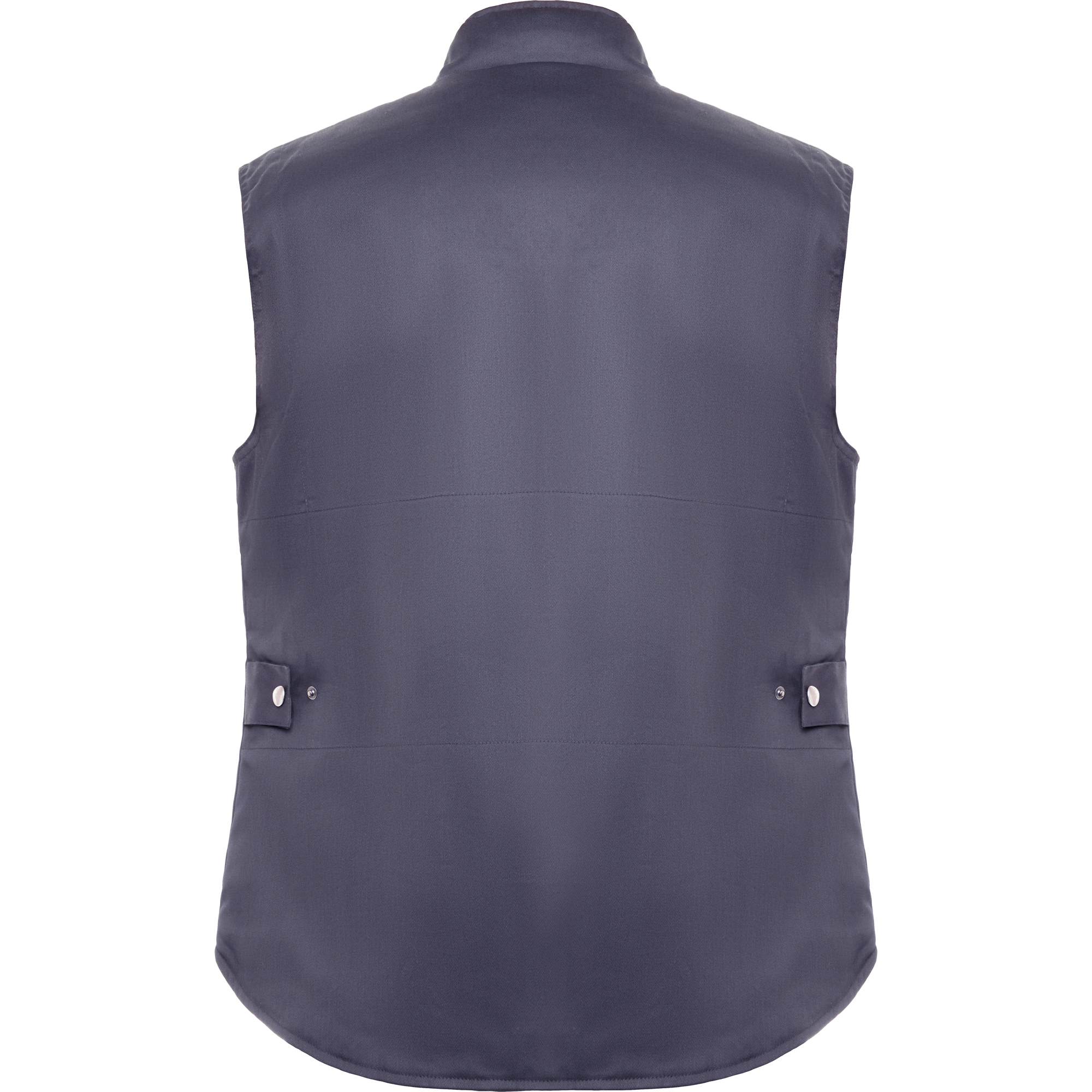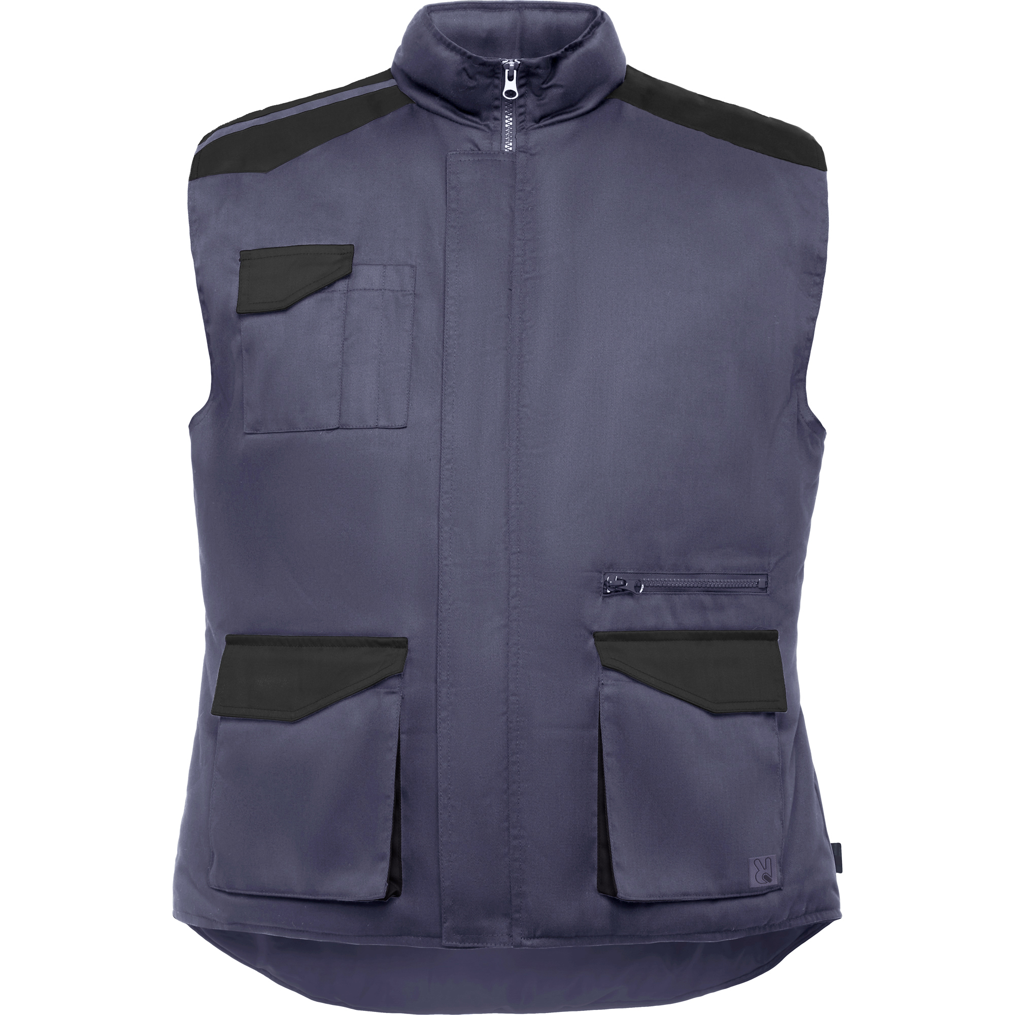 Chaleco laboral multibolsillos acolchado con faldón trasero.