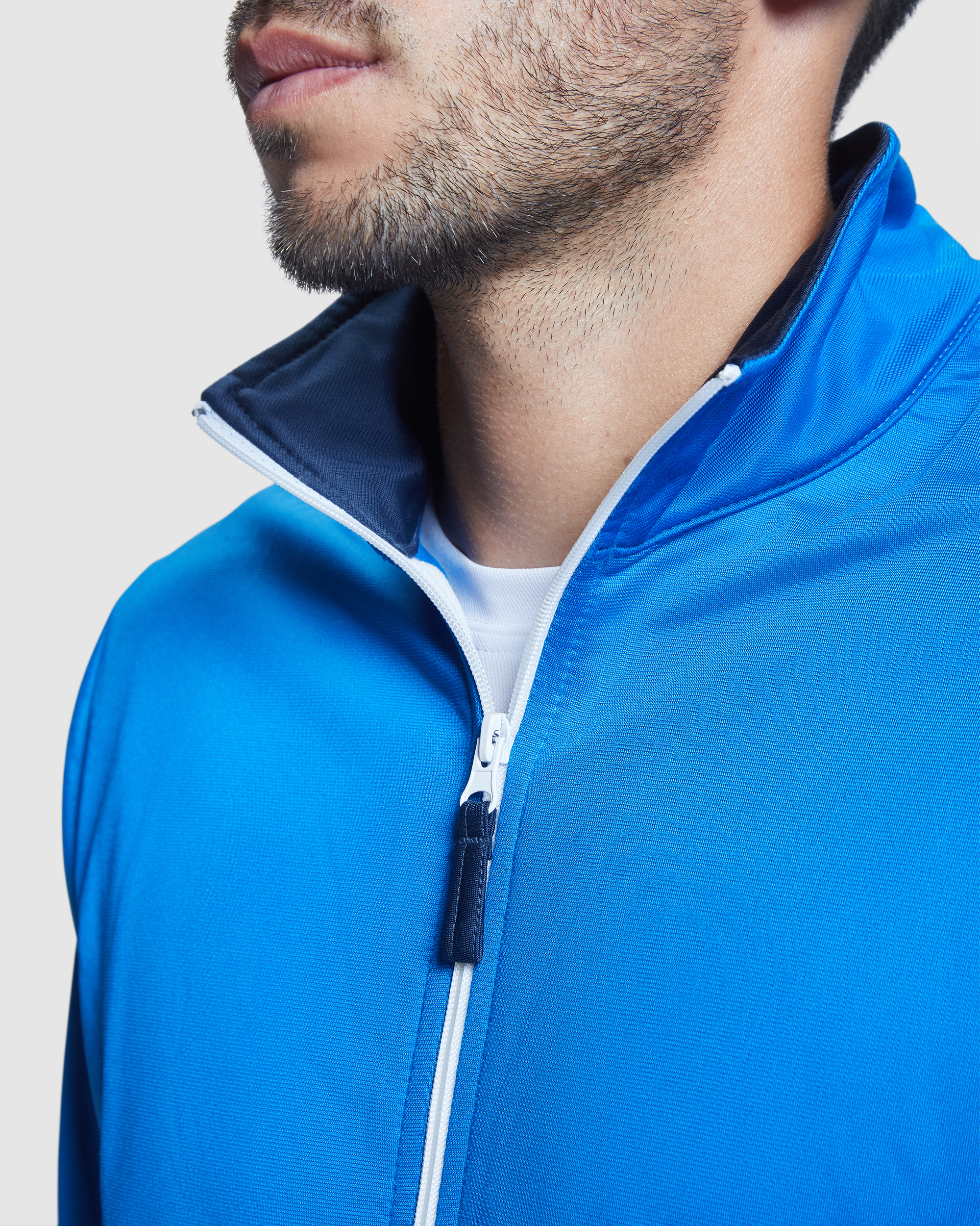 ·Cremallera central con cubrecosturas interior de adorno en contraste.