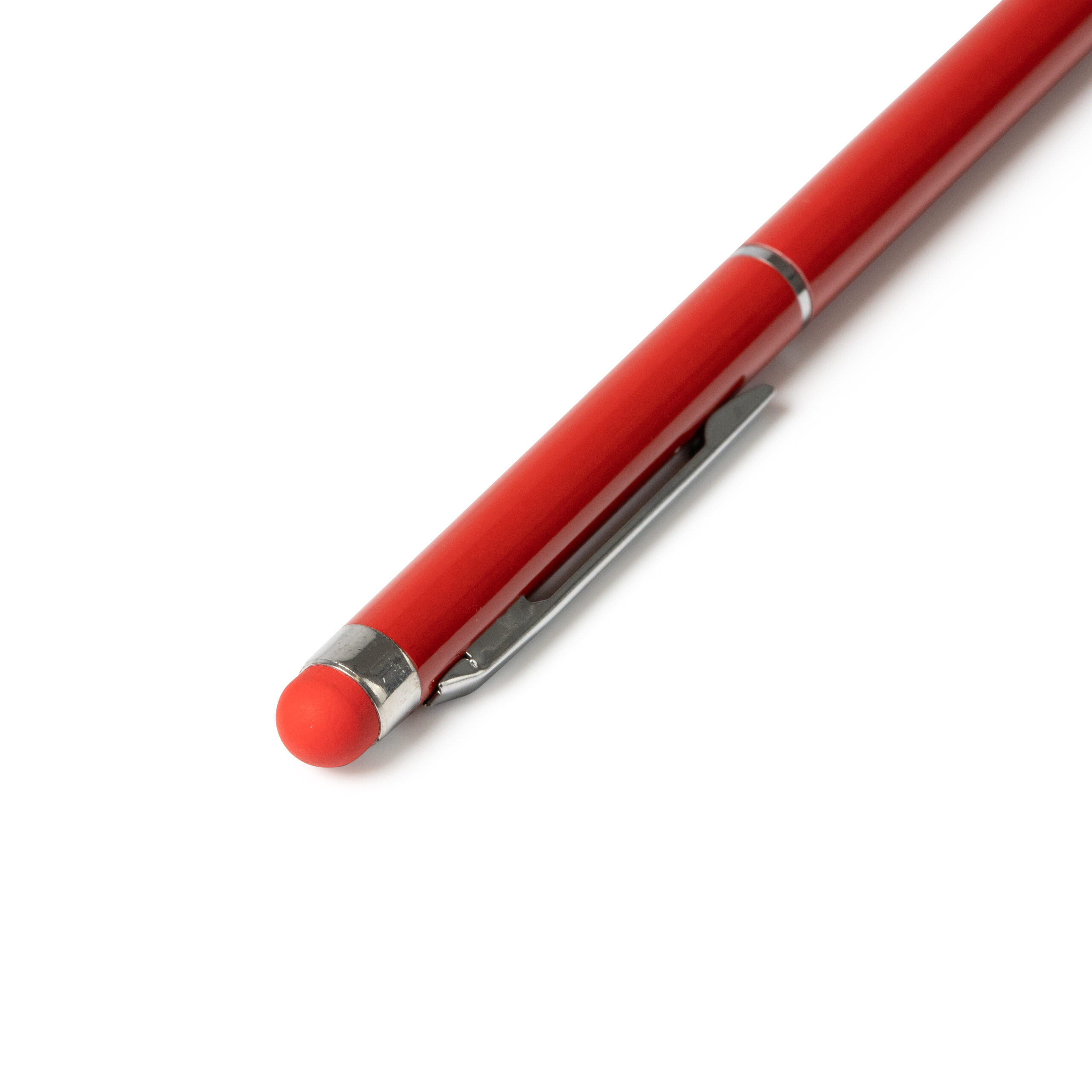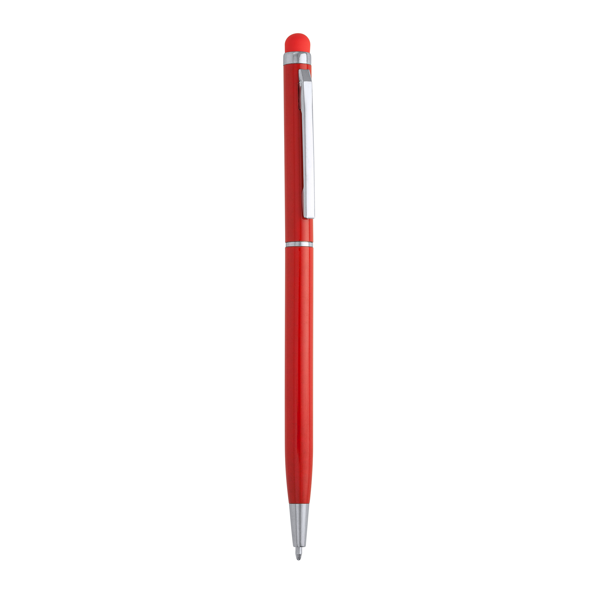 Bolígrafo giratorio de aluminio con puntero táctil en color a juego con el cuerpo. Tinta azul.