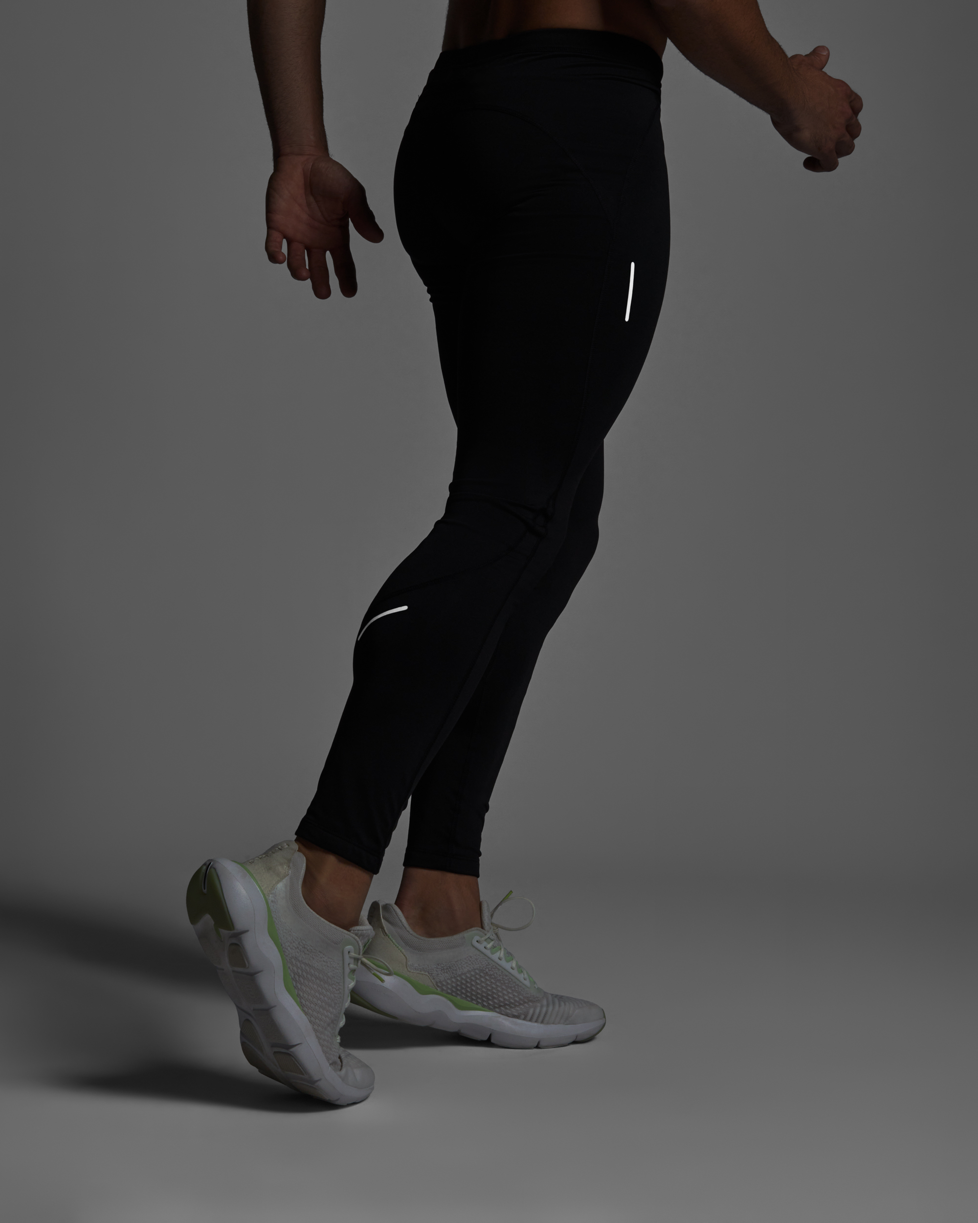 Malla larga running hombre transpirable. Cinturilla engomada con cordón cruzado ajustable. Detalles reflectantes. Mini bolsillo trasero.