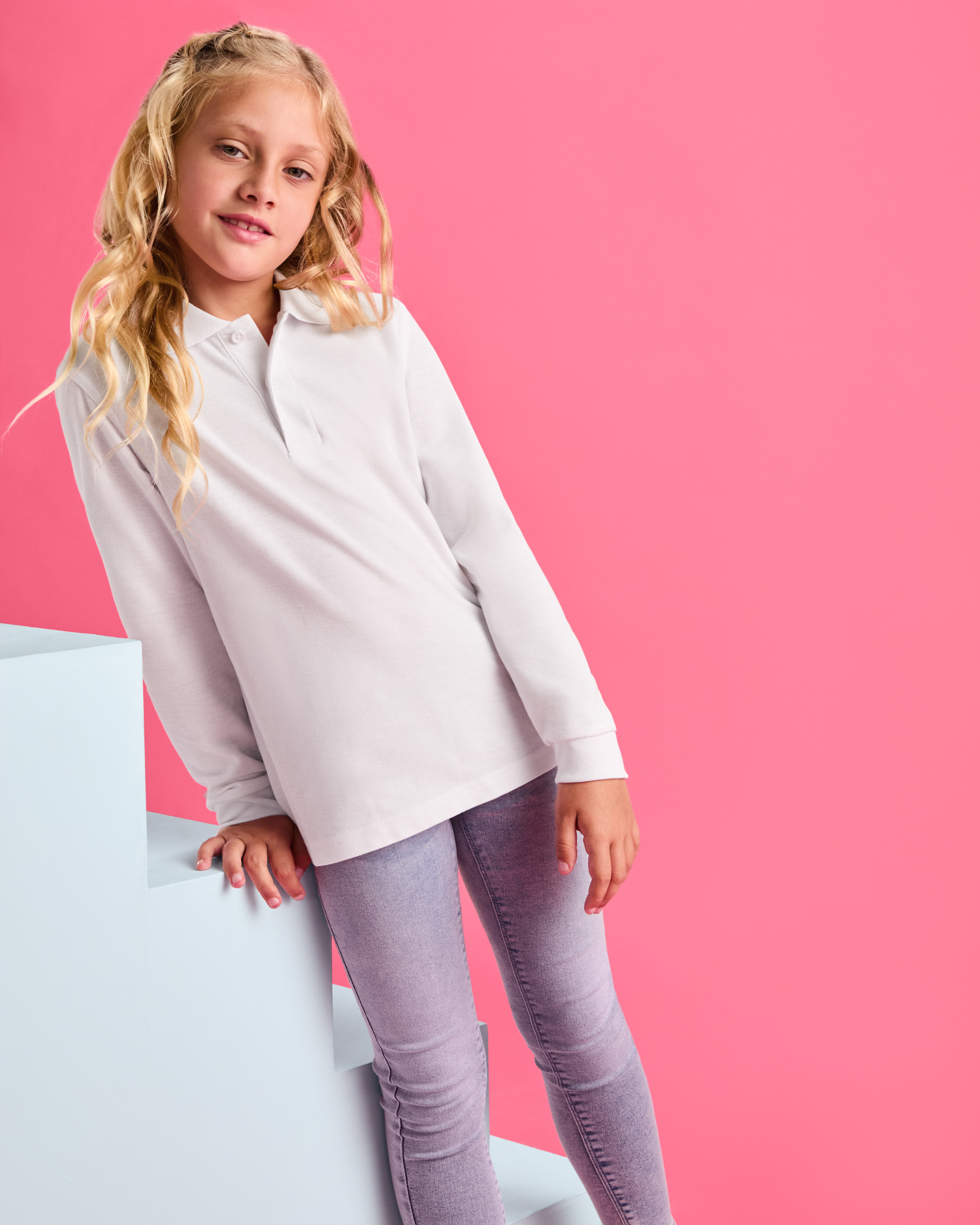 Polo de manga larga, cuello y bocamangas acanalado y tapeta de 2 botones. Puños canalé 1×1 con elastano y cubrecosturas reforzado en cuello.