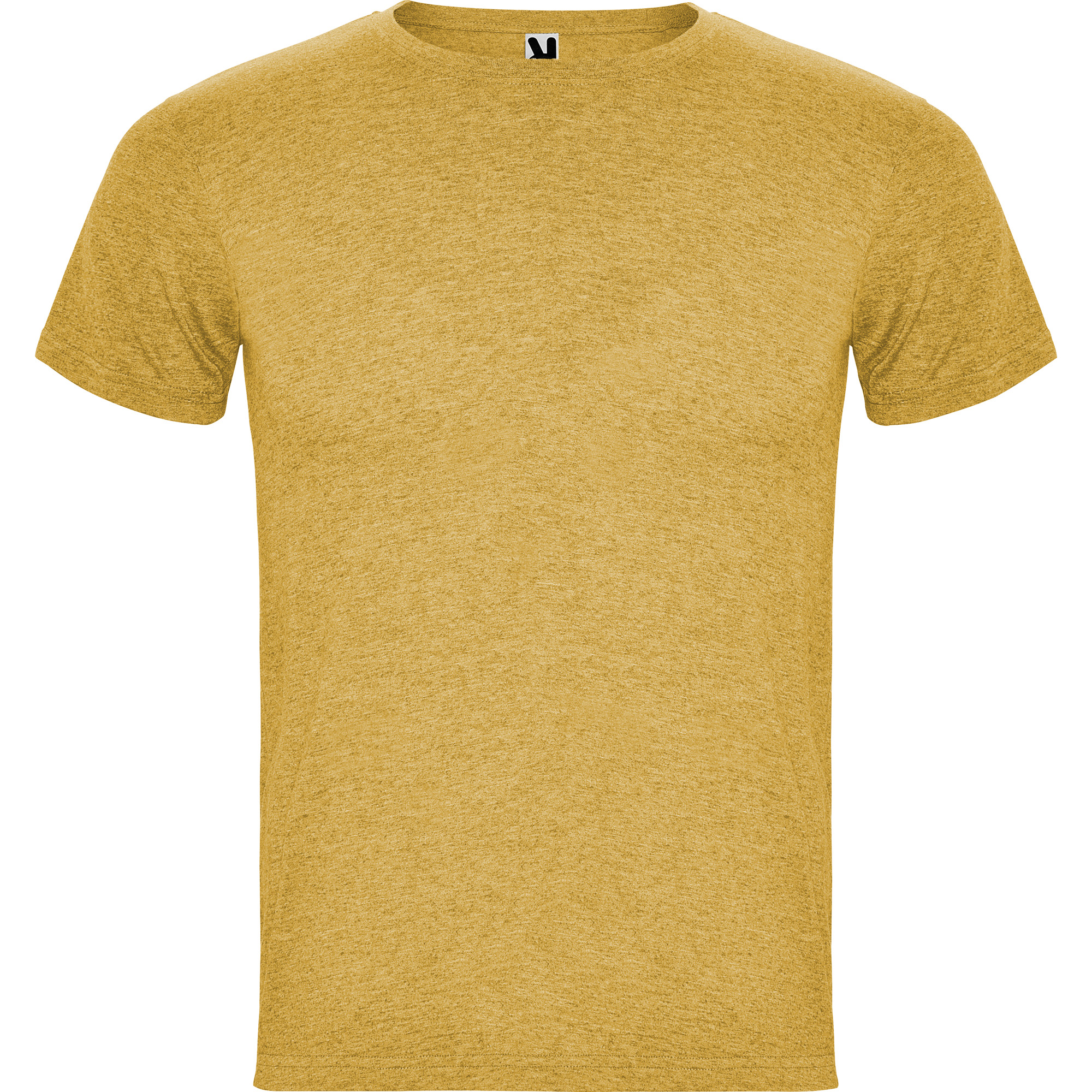 Camiseta de manga corta tubular con acabado vigoré. Cuello redondo en canalé 1×1. Cubrecosturas en cuello del mismo tejido.