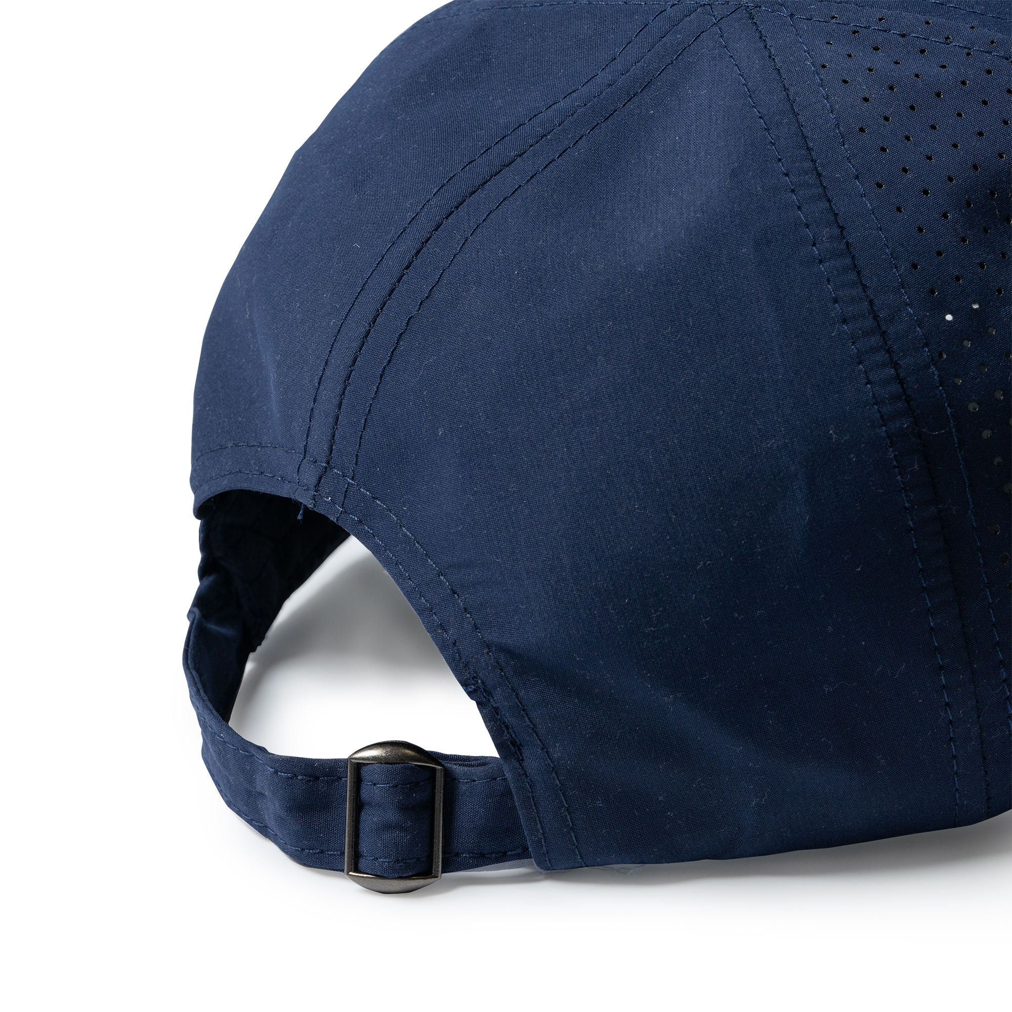 Gorra deportiva ventilada de 6 paneles 100% microfibra. Cierre de hebilla ajustable y orificios de ventilación.