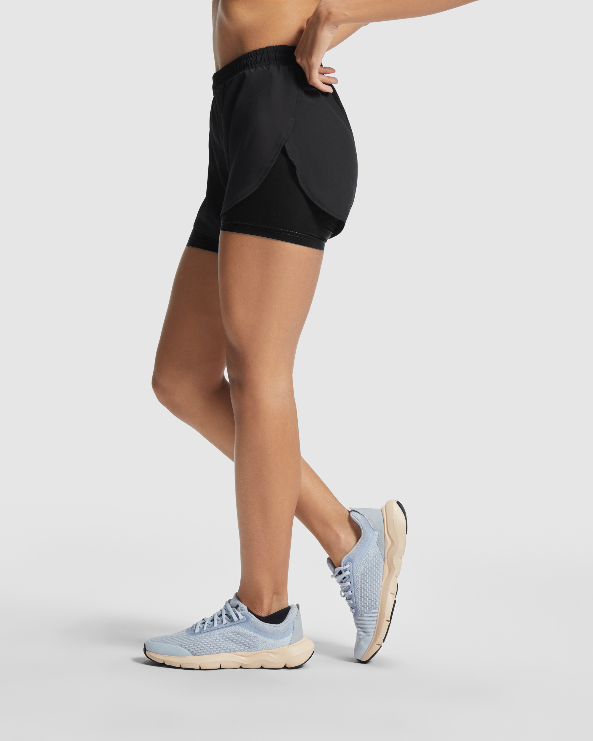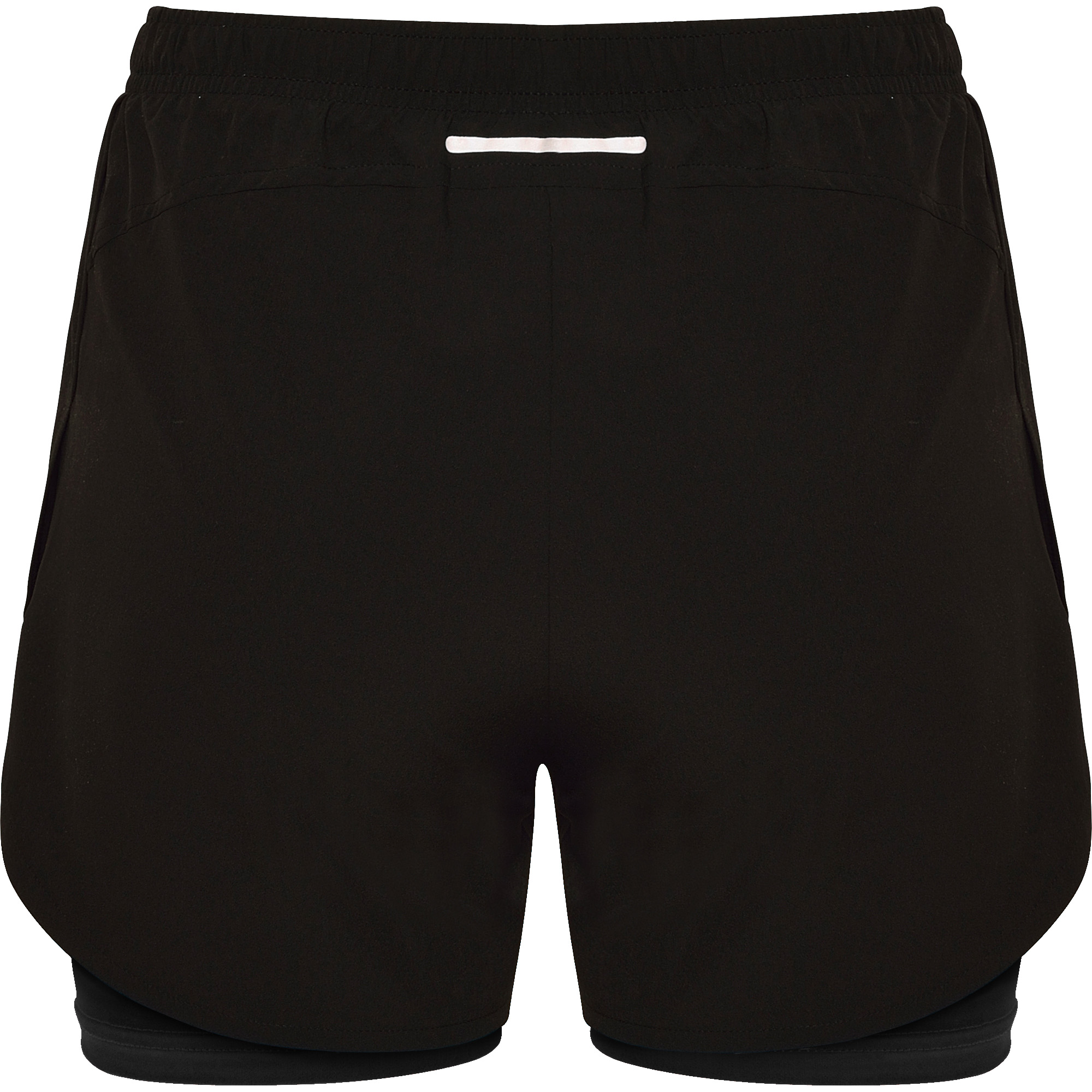 Pantalón corto running en tejido ligero y stretch. Malla elástica interior. Cintura engomada y cordón ajustable cruzado. Detalle reflectante en la parte trasera.