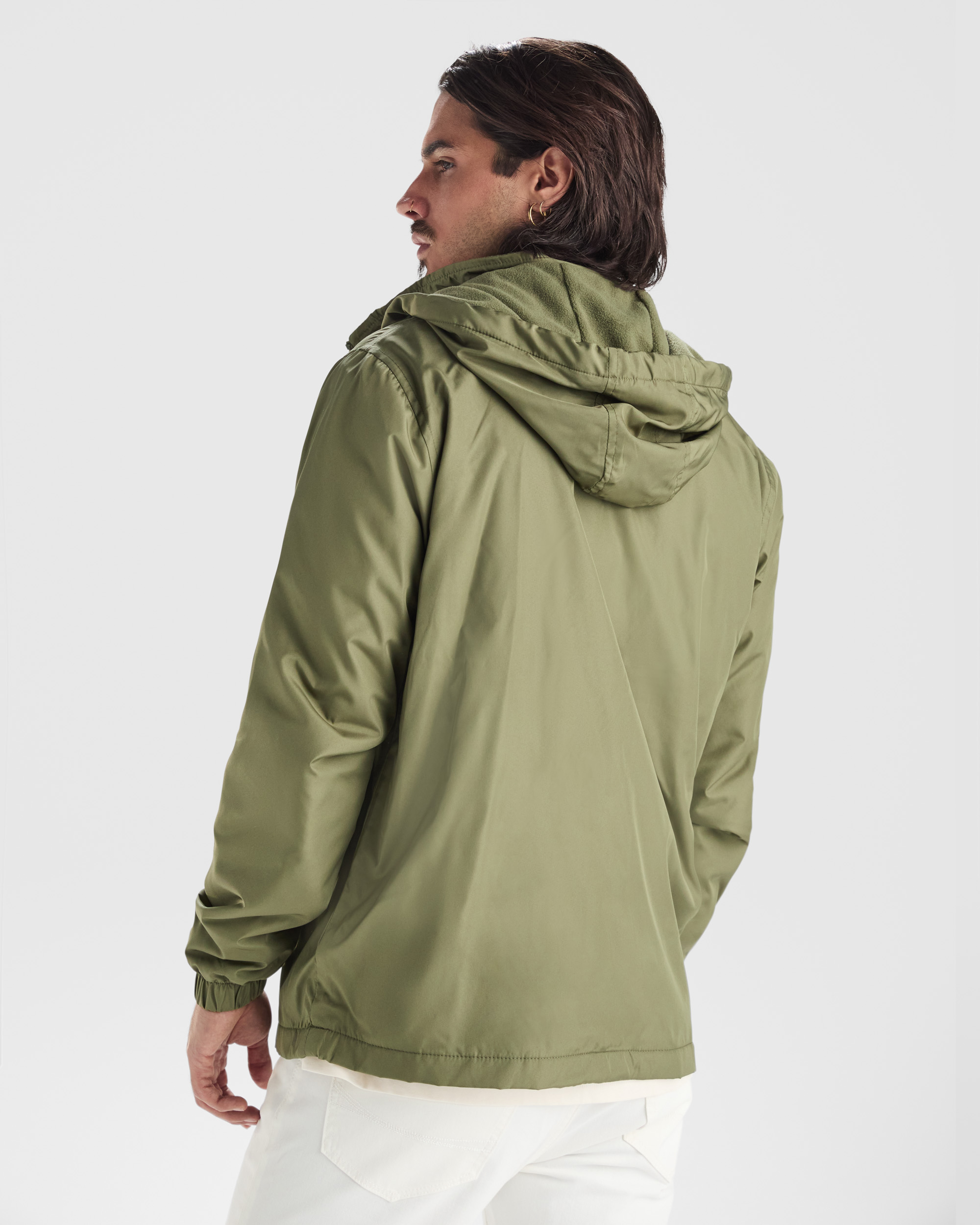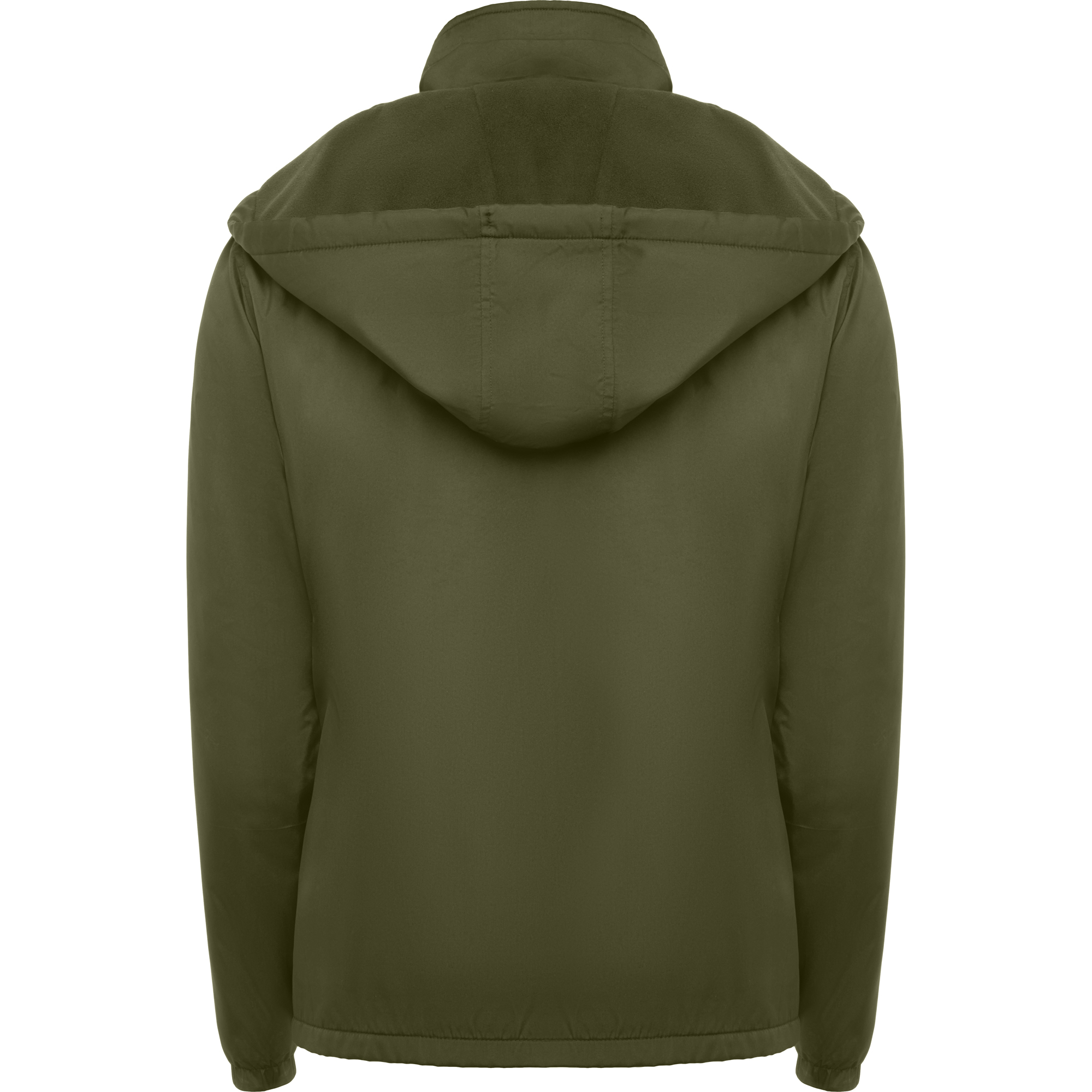 Chaqueta ligera resiste al agua con cremallera frontal. Repelente al agua y resistente al viento. Protector de barbilla. Capucha con cremallera extraíble y ajustadores elásticos. Puños engomados. Bolsillos laterales con cremallera y ribeteados en el mismo tejido. Bolsillo interior en pecho izquierdo. Forro interior en micropolar al tono.
