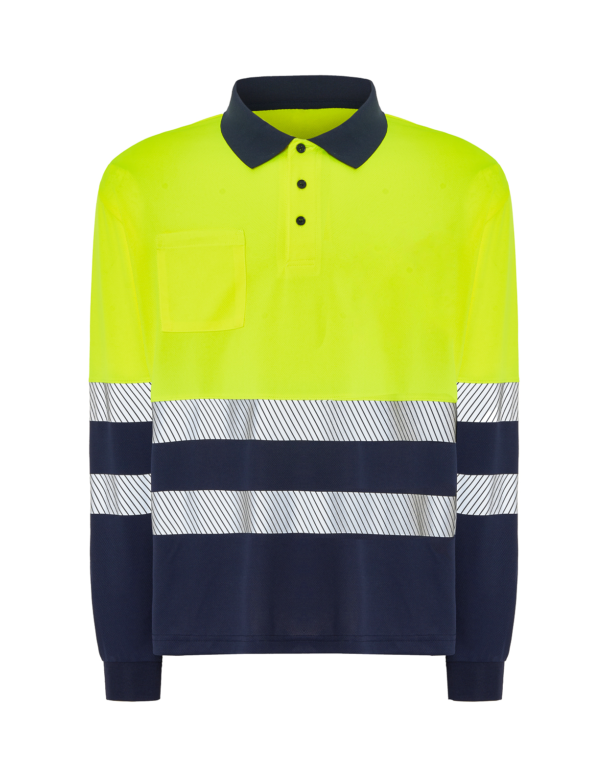 - Dos cintas reflectantes segmentadas, termoselladas en torso y mangas.