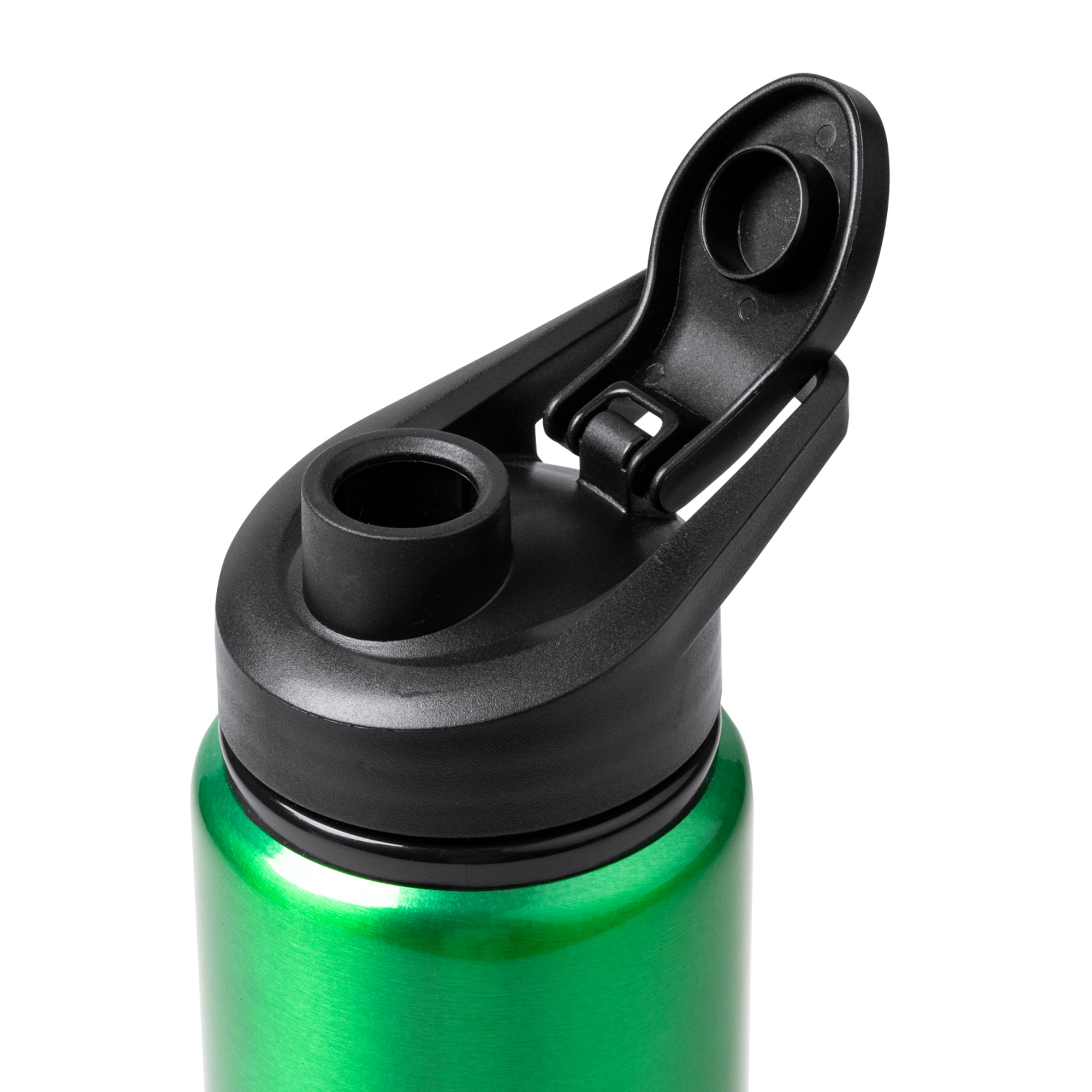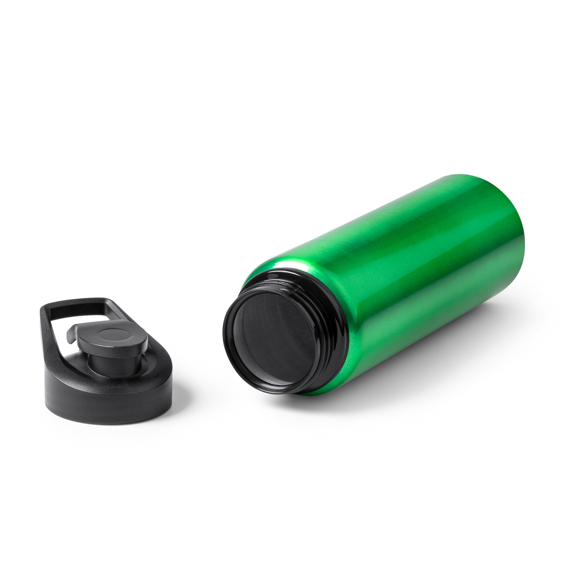 Bidón de aluminio reciclado con acabado metalizado. Equipado con un tapón con boquilla de rosca de seguridad y una práctica asa de transporte. Ideal para mantenerte hidratado de manera sostenible y segura, combinando durabilidad y diseño elegante en un solo producto. Perfecto para llevar a todas partes, desde la oficina hasta actividades al aire libre. Capacidad de 800 ml.