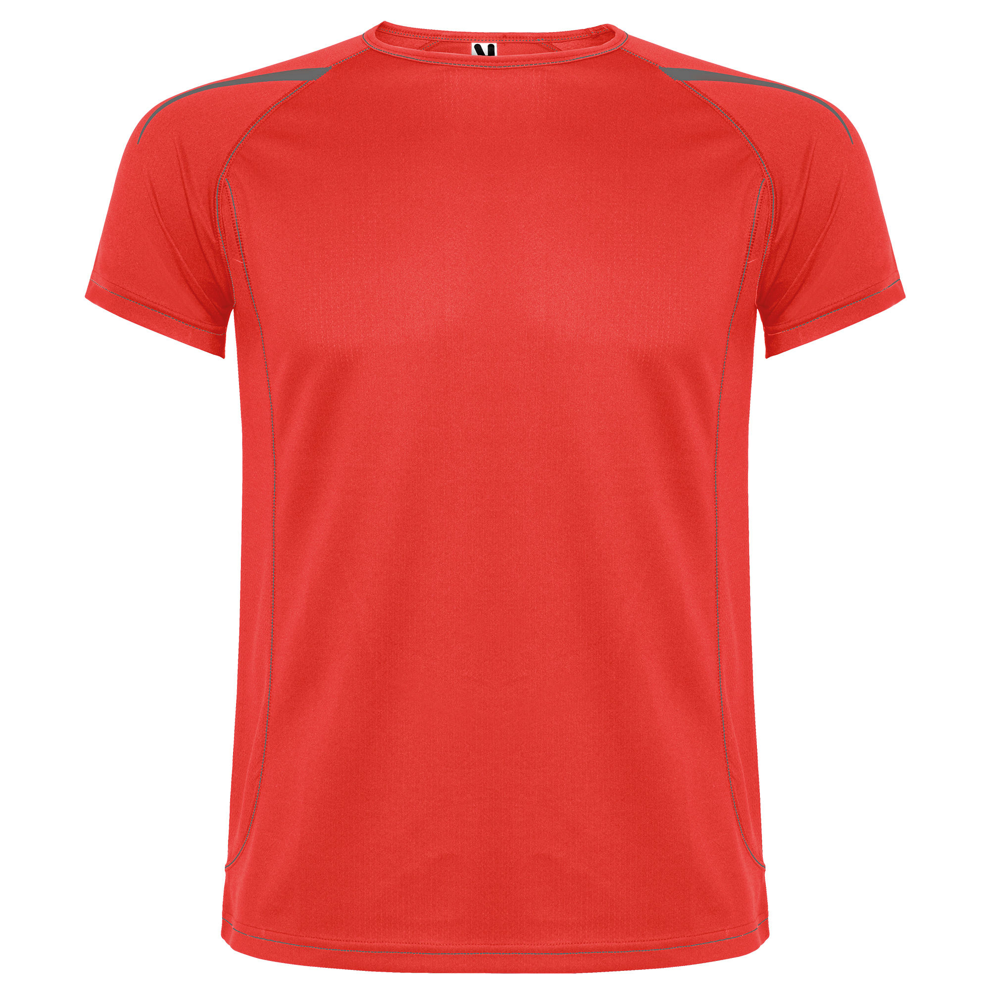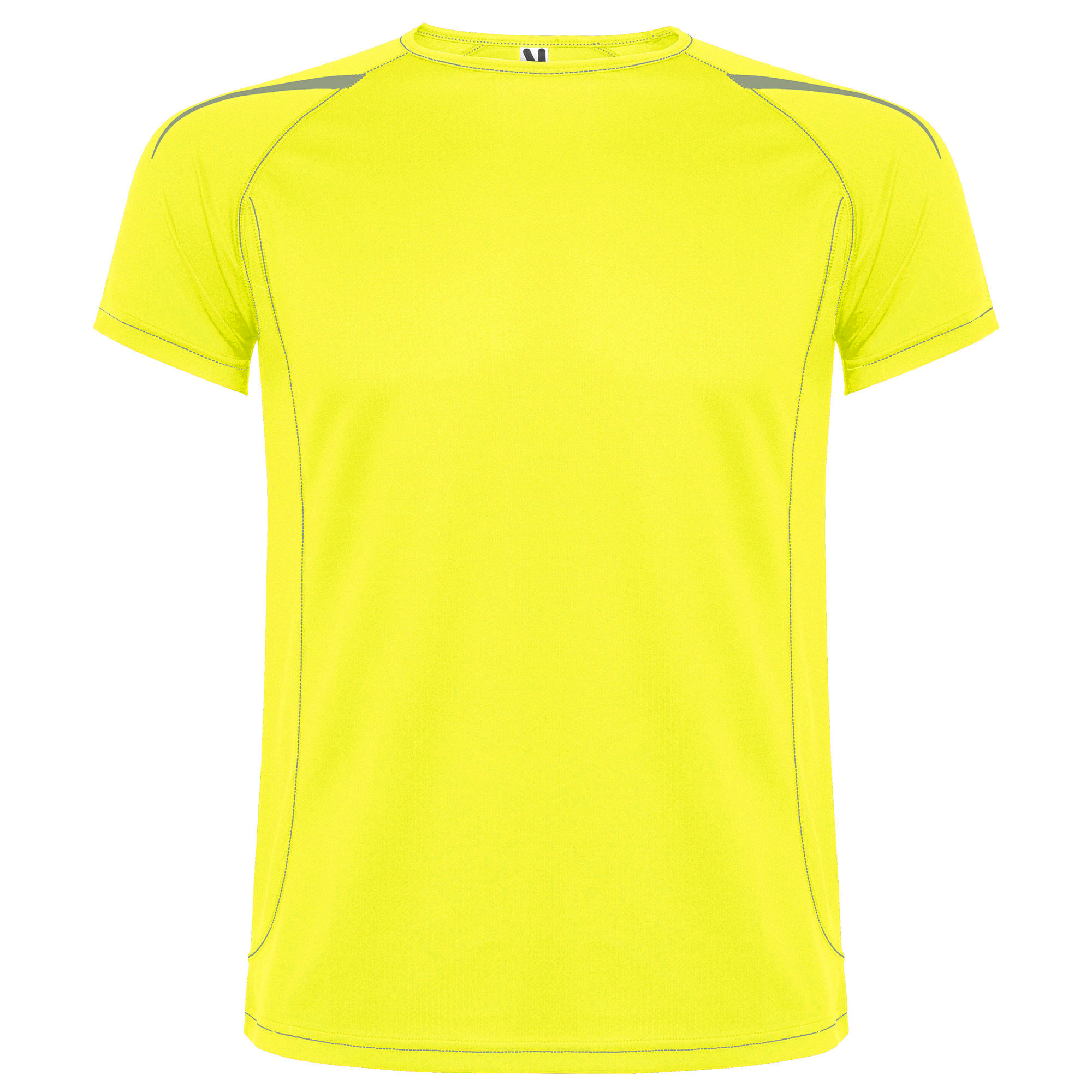 Camiseta técnica manga ranglán unisex transpirable. Costuras a contraste. Cuello ribeteado en el mismo tejido. Paneles laterales. Detalles reflectantes en hombros en todos los colores menos en negro y royal, que es amarillo flúor.