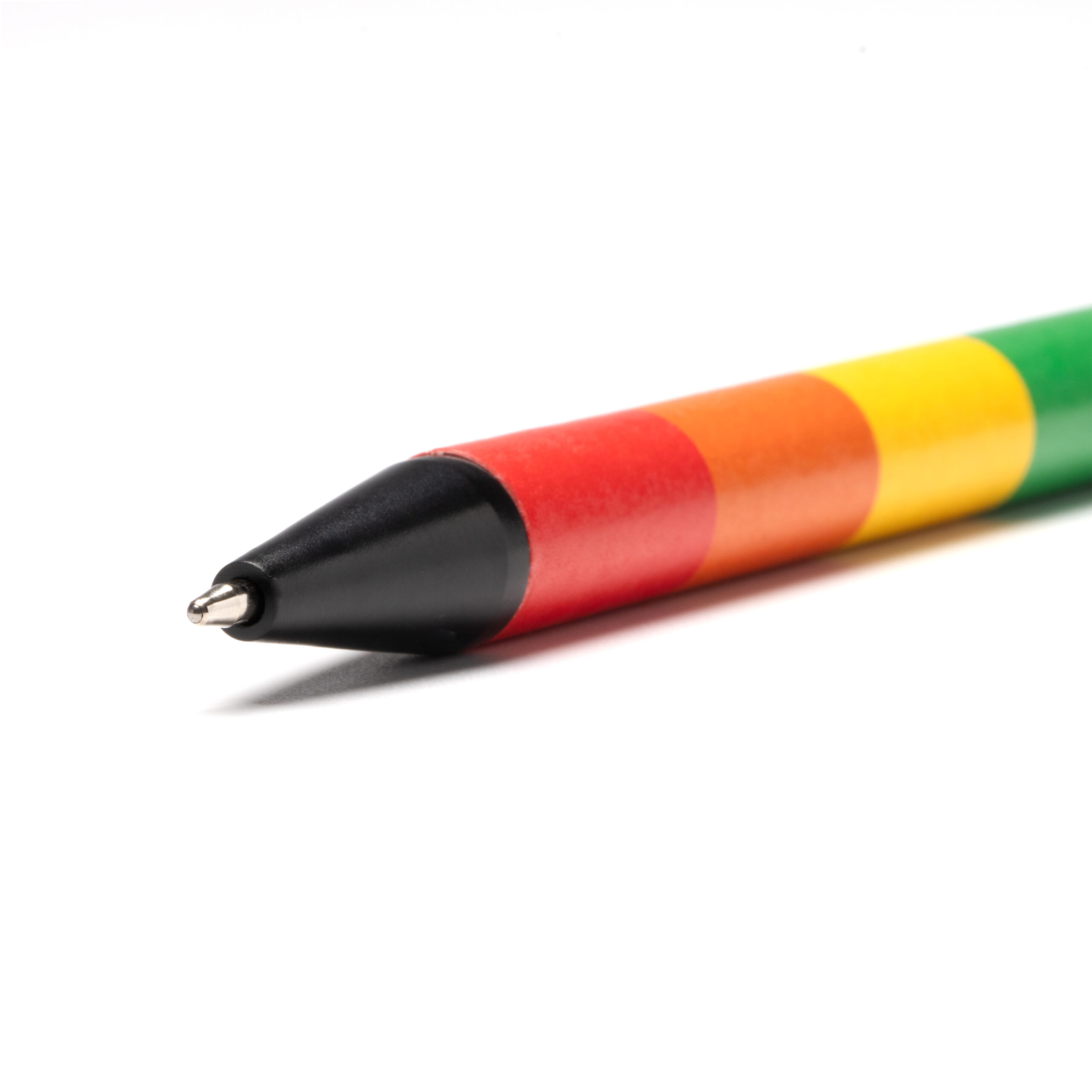 Boligrafo con cuerpo multicolor de mecanismo pulsador. Tinta azul.