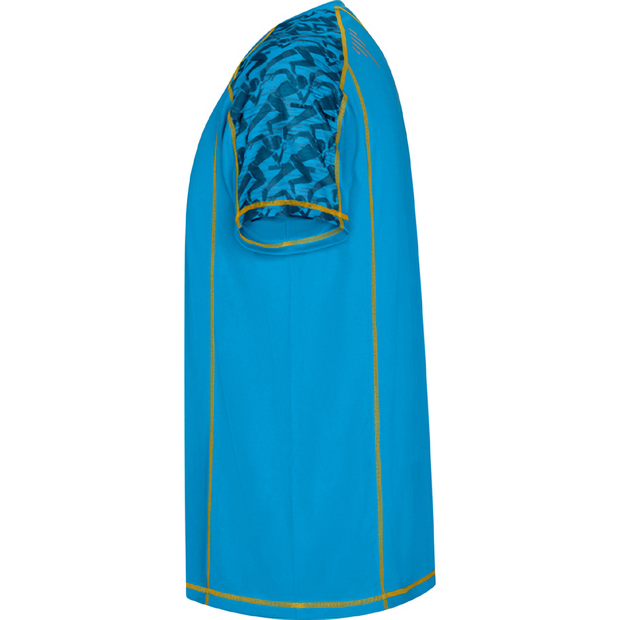 Camiseta técnica manga ranglán unisex con paneles sublimados transpirable. Costuras remalladas a contraste. Cuello redondo y cubrecosturas del mismo tejido al tono. Etiqueta tejida ECO. Certificado GRS.