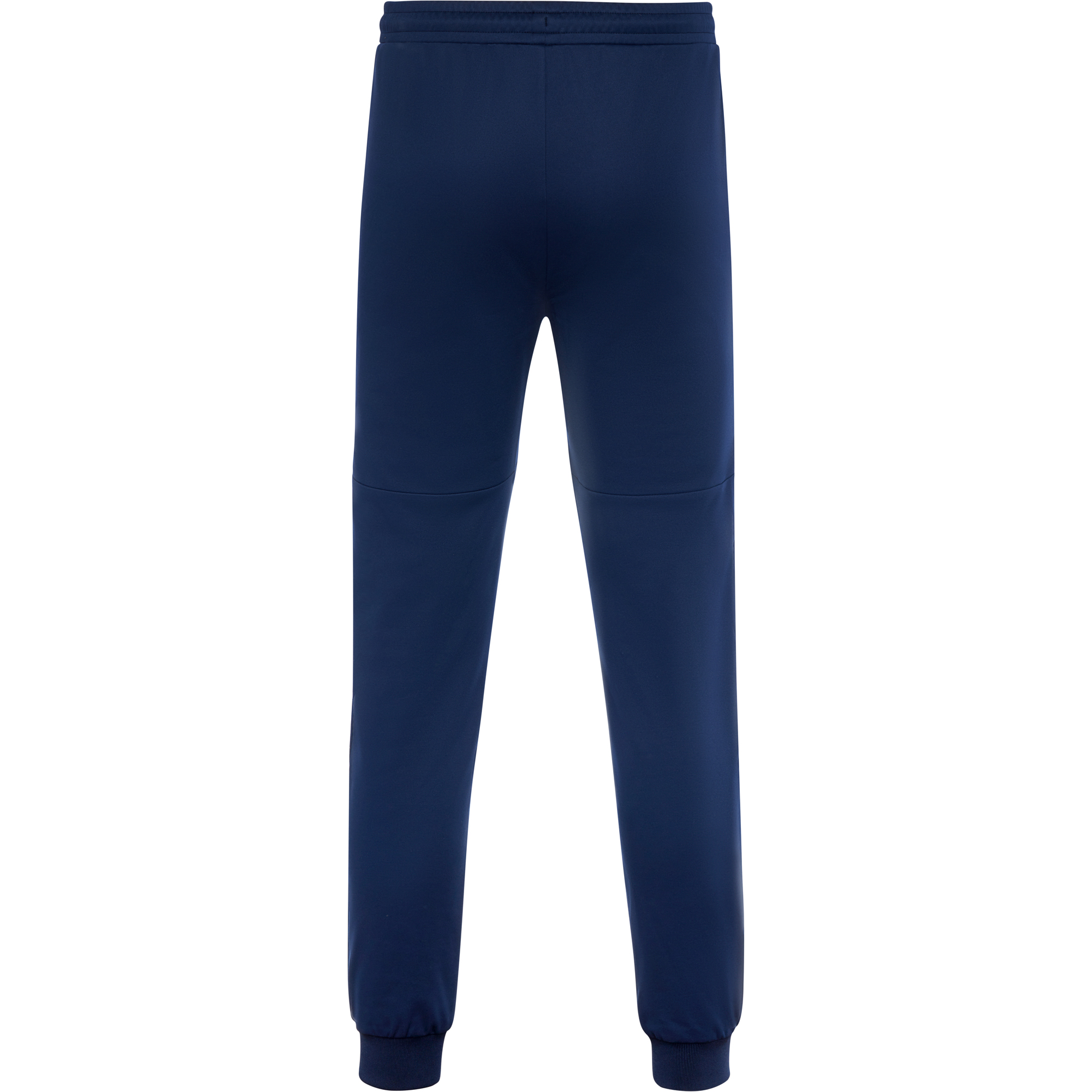 Pantalón largo de deporte. Cintura engomada y cordón de ajuste. Bolsillos laterales con cremallera. Banda lateral a contraste hasta media pierna. Piezas a la altura de las rodillas. Rib 1×1 en tobillos. Dos opciones de color para combinar con la chaqueta GLADIUS.