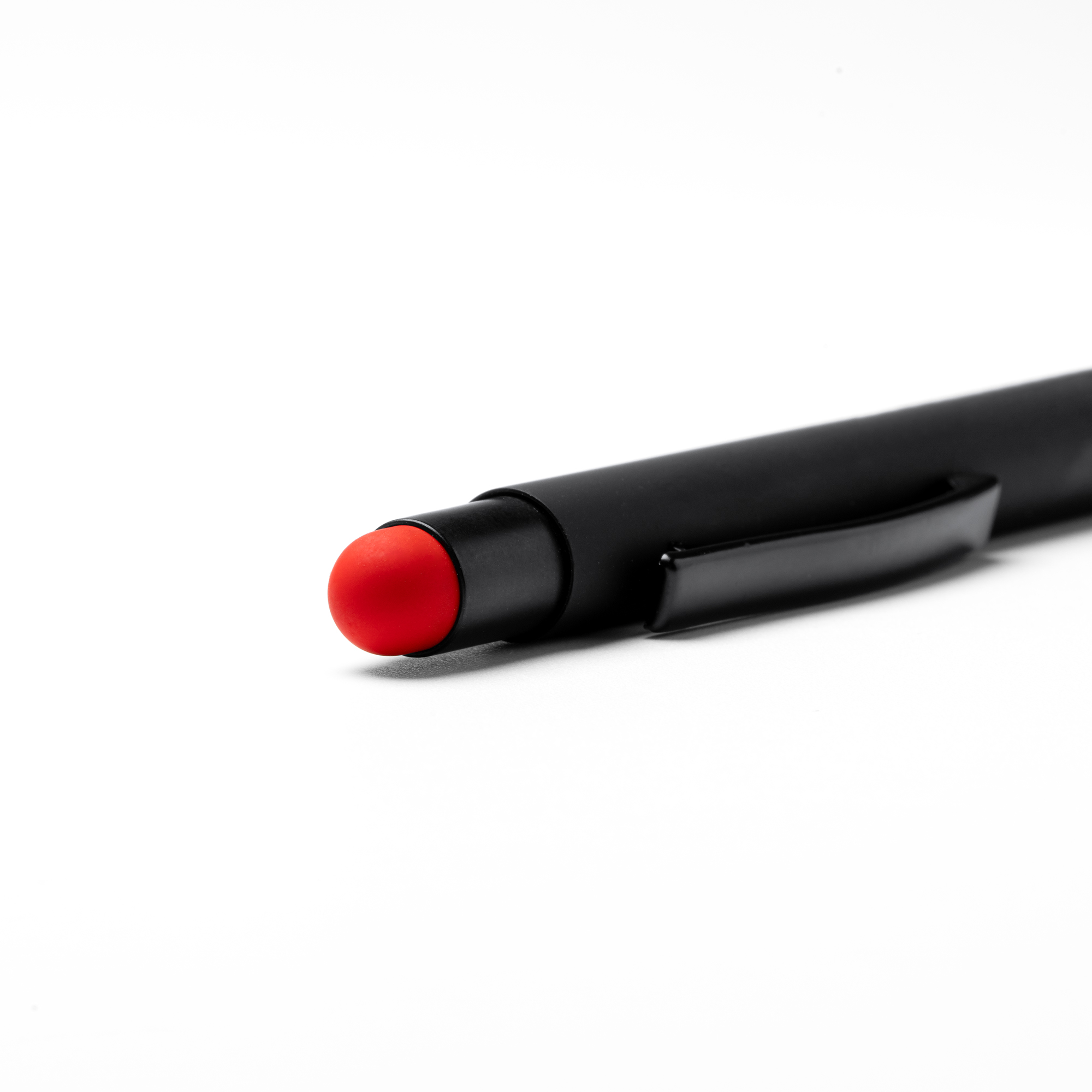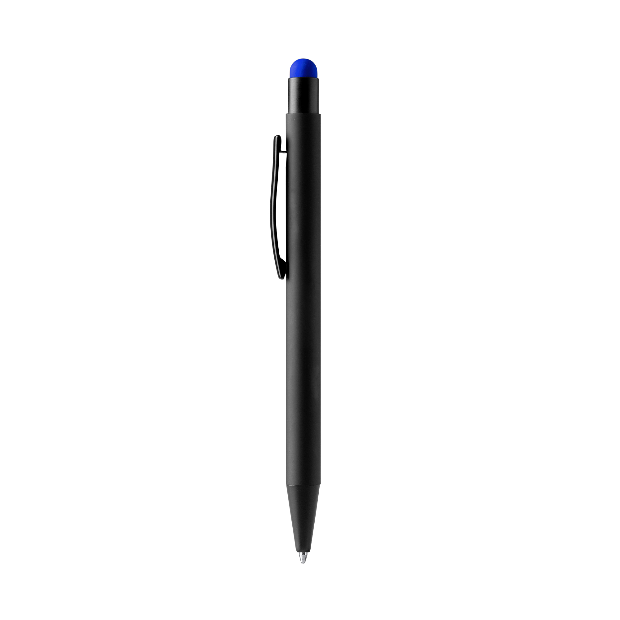 Bolígrafo de aluminio con acabado de textura suave. Cuenta con puntero táctil en color. Especial para el marcaje en láser. Carga jumbo de tinta azul. Composición: Aluminio Observaciones: Marcado a láser a tono con el color del puntero.